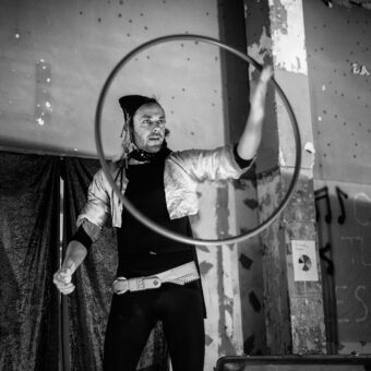 Vivien Hautenauve incarne un clown solaire et bancal, mêlant poésie, maladresse et humour pour transformer objets du quotidien en mondes imaginaires.